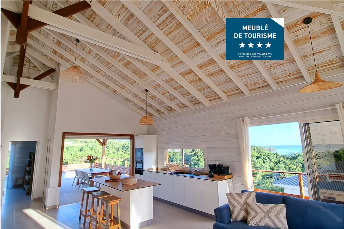 – 4-star villa in Trois-Îlets, close to beaches, restaurants and shops – Quiet, residential and secure neighborhood – Modern, elegant, comfortable villa with full amenities – Refined décor and warm, welcoming atmosphere – Beautiful sea view over the Bay of Fort-de-France – Private pool and spacious deck with total privacy – Fiber Wi-Fi + Netflix smart TV – Impeccably maintained villa, inspected before every stay – Tailored services: cleaning, linen, private chef, meal delivery