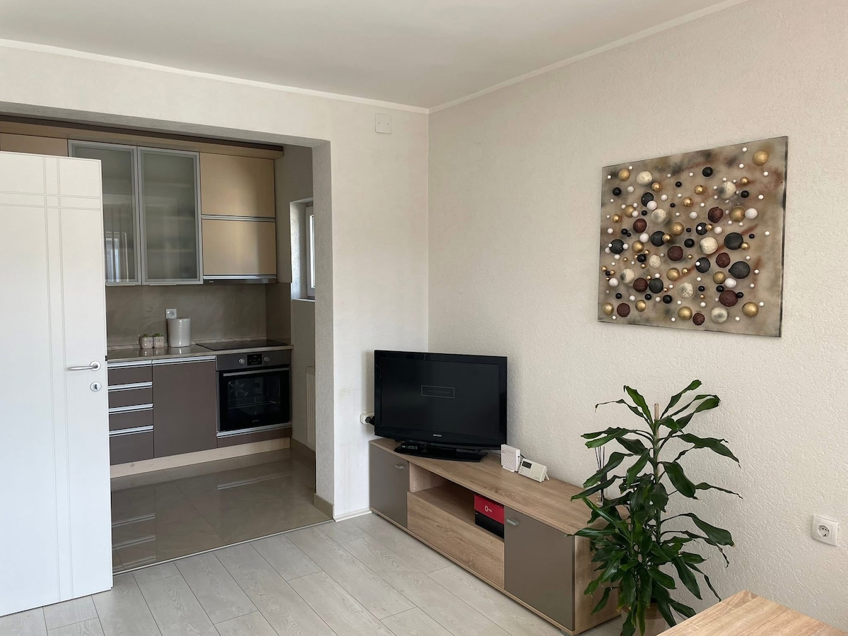 Nuevo apartamento moderno de dos habitaciones con un dormitorio, 55 m2, en el centro de la ciudad (calle principal-zona peatonal). Ideal para parejas, personas solas, viajeros de negocios y parejas con hijos. Puede alojar cómodamente hasta 3 personas. El apartamento tiene un dormitorio grande con cama de matrimonio y terraza, baño con ducha, cocina totalmente equipada, sala de estar con tres asientos, 2 sillones, TV inteligente y balcón francés. Aire acondicionado, calefacción por suelo radiante, aparcamiento. Nota: El apartamento está en el segundo piso, ¡el edificio no tiene ascensor!