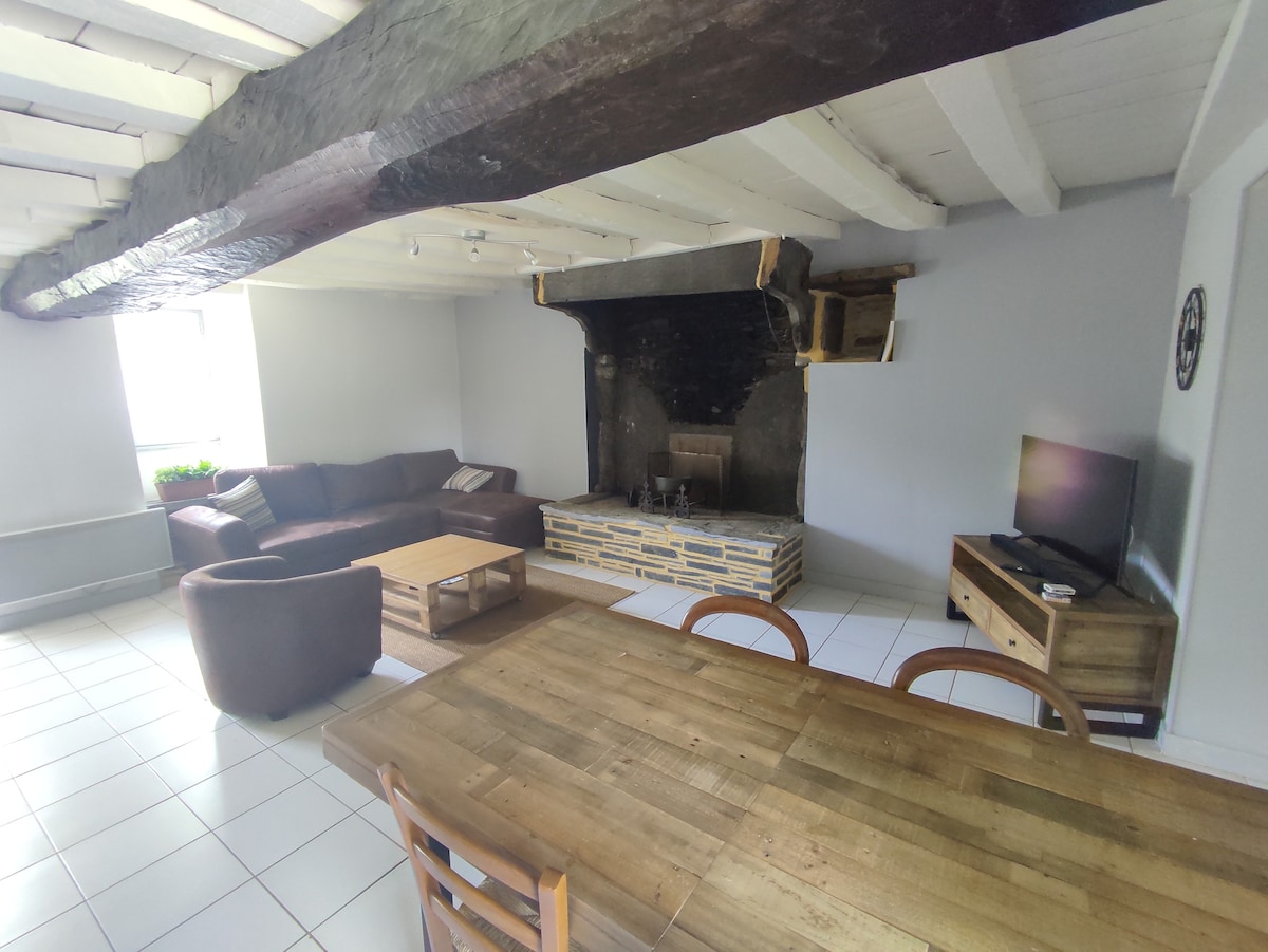 Esta casa de campo en el corazón de un pueblo, tiene una habitación principal con una zona de cocina (placas de inducción, horno mixto, nevera), un sofá, una mesa (plegable) con 4 sillas, un baño, y un gran dormitorio de arriba, una mesa que se puede utilizar para trabajar ( wifi de buena calidad), una cómoda, un armario. Posibilidad de comer fuera y utilizar la piscina.