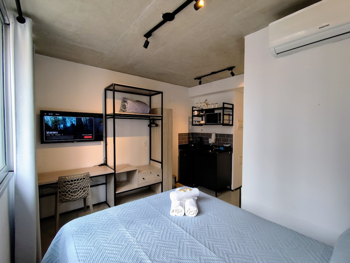 Nuevo estudio con vista panorámica — ¡Piso 24 con pileta infinita y estilo! Disfrutá de São Paulo con comodidad y estilo en nuestro monoambiente, preparado con cariño para recibirte. Ubicado en el piso 24 con *vista de vidrio de 180° de la autopista Pinheiros*. Un refugio moderno, ideal para quienes buscan practicidad, comodidad y una experiencia única en la ciudad.