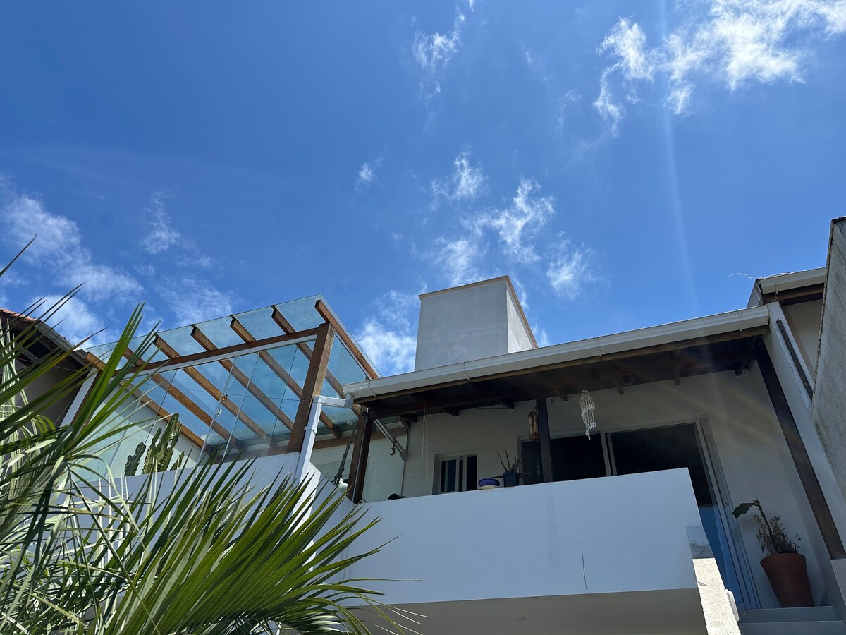 Un loft privado con una vista impresionante de la ¨Lagoa da Conceição¨ y el mar, ideal para parejas, ubicado en el barrio ¨Canto dos Araças¨, en medio del bosque atlántico. Una ubicación acogedora, silenciosa y privada, a solo 2,5 kilómetros del centro del barrio de Lagoa, a 300 metros de Lagoa da Conceição, al comienzo del sendero a Costa da Lagoa. Una casa romántica panorámica ideal para parejas. A 5 minutos en auto del centro de la laguna. A 15/20 minutos en auto de la playa Mole/Joaquina/Galheta/Barra.