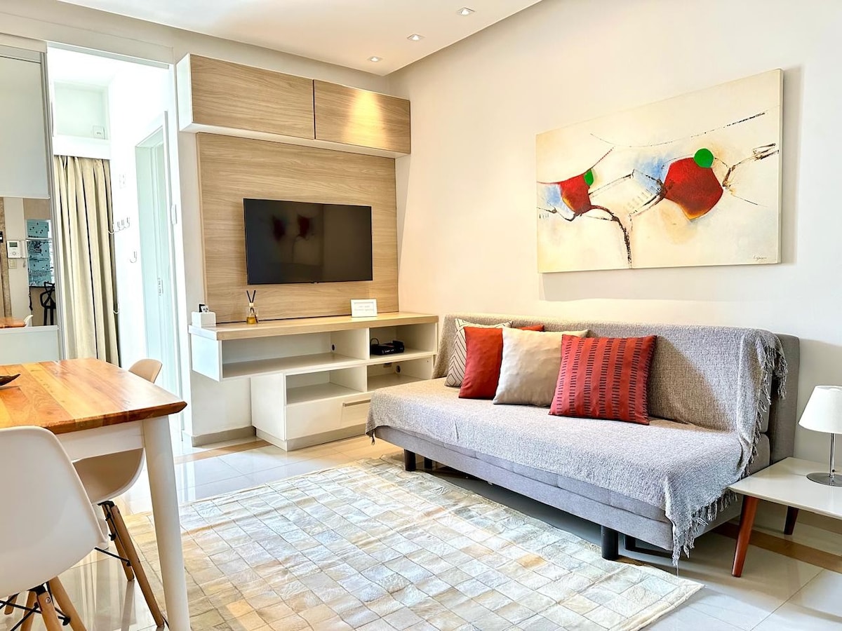 Súper lujoso y bien decorado. Se você está procurando uma pausa requintada, aquí está! Os acabamentos e detalhes, incluindo obras de arte originais neste oásis, proporcionam uma sensação de 5 *. Um centro de mídia opera a gigantesca TV, ar acondicionado, cortinas blackout e iluminación ambiental. Trousseau toalhas e roupas de cama de algodão egípcio completam toda una experiência. A praia, transportes públicos, supermercados, farmácias, bares LGBT+ y restaurantes à su porta.