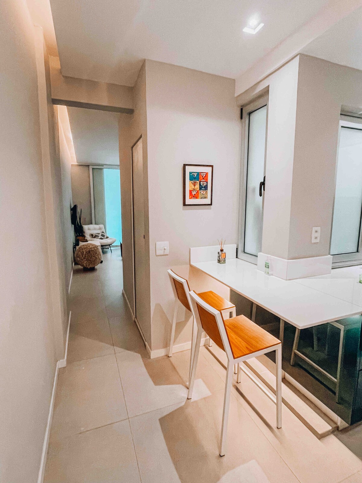 - Piso con vistas fantásticas; - Limpieza diaria sin costo adicional - Departamento recién renovado con muebles nuevos; - Condominio con conserje 24h/7d (eres bienvenido en cualquier momento), restaurante, piscina, sauna y gimnasio; - Cerradura de contraseña; - Smart TV y aire acondicionado split en el salón y el dormitorio; - Wifi. - Capacidad para 4 personas (1 cama doble + 2 colchones) - Cocina completa, incluido purificador de agua fría - A 350 metros de la playa. - Lugar para guardar las valijas