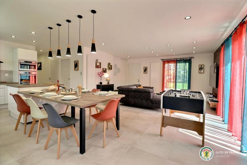 "Escape and recharge your batteries in this elegant and tranquil retreat in the heart of nature. New: take advantage of 2 free mountain bikes to explore the surrounding area. Absolute peace and quiet with office space for teleworking. Located in the heart of hiking and cycling trails. Just 5 minutes from the Peaugres Safari Park! Walks around the lakes (Devesset 35 min, Ternay 15 min). Direct access to the river and private swimming pool in season".
