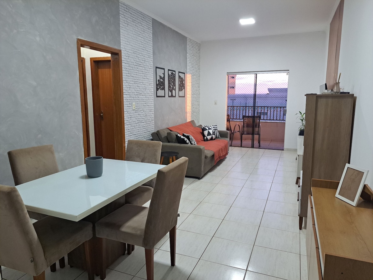 ¡Ideal para relajarse! ¡Excelente ubicación! Cerca del centro comercial, restaurantes , supermercados, farmacia, etc. - 1 dormitorio con cama doble y aire acondicionado; De 1 dormitorio con 1 colchón doble, 1 colchón individual, 1 escritorio de trabajo y ventilador de techo; - 1 baño con ducha eléctrica; - Habitación con sofá, aire acondicionado, TV de 42pies y mesa de comedor; - Cocina con estufa, nevera y utensilios. - Internet wifi y garaje para 01 auto. ¡Disfruta de la simplicidad en este lugar tranquilo y bien ubicado!