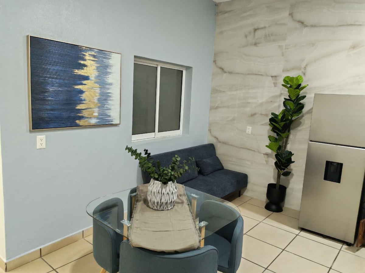Hospédate en esta casa moderna con toques rústicos, acabados de lujo y diseño tipo industrial. Disfruta de espacios amplios, cocina equipada, aire acondicionado, detalles en ladrillo y concreto, iluminación LED, muebles elegantes y un ambiente único para descansar o trabajar. Ideal para parejas, familias o viajeros exigentes en el corazón de Ruiz, Nayarit.