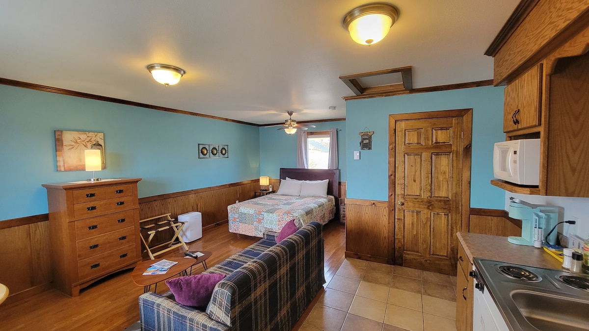 This unique place with unique style has an awesome view of the Long Range Mountains. The loft has private entrance and a deck to enjoy the sunset. This suite is cozy and contains everything you will need for an enjoyable stay. Including a queen size bed, 42” flat screen Roku smart tv, free wifi, AC, all appliances for kitchen. No additional cost to accommodate children. Should no availability for the loft check our bungalow. This is smoke free and strictly pet free suite due to allergies.