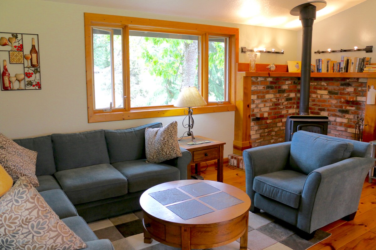 Cabaña rústica frente al río a solo unos pasos del mundialmente famoso río Umpqua. Casa de 3 dormitorios/2 baños en casi un acre enclavada en los árboles. Se admiten 2 mascotas con aprobación previa y se aplica una tarifa, ver más abajo. Hay una cocina totalmente amueblada, microondas, cafetera, estufa, lavavajillas, estufa de pellets, barbacoa, wifi, streaming y una buena selección de DVD, libros y juegos disponibles. También hay lavadora y secadora de tamaño completo. La cabaña tiene capacidad para 6 personas cómodamente (el límite incluye bebés).
