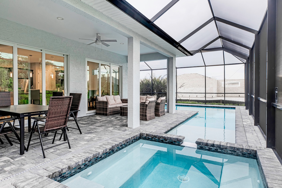 Your Perfect Florida Getaway Awaits! Bring the whole family to this stylish and spacious 4-bedroom villa with a heated pool. Located in a quiet neighborhood, just a short drive from beautiful beaches, lively bars, and top restaurants. Relax with a BBQ on the patio overlooking the golf course, take a swim, or cycle the scenic Cape Haze Trail. Sunshine, space, and unforgettable memories—book your stay today! Please note that the pool is heated at no extra cost.