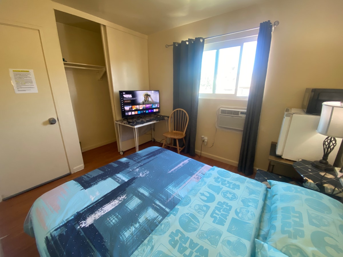 Fully private with its own entrance and exclusive patio. •Private entrance •Private bathroom •Small Kitchen •Private Patio •Self check-in •Smart lock system •1 queen bed and 1 sofa •Smart TV, fridge, microwave •12 miles from Disneyland •34 miles from LAX •Close to shops and restaurant •Quiet neighborhood.