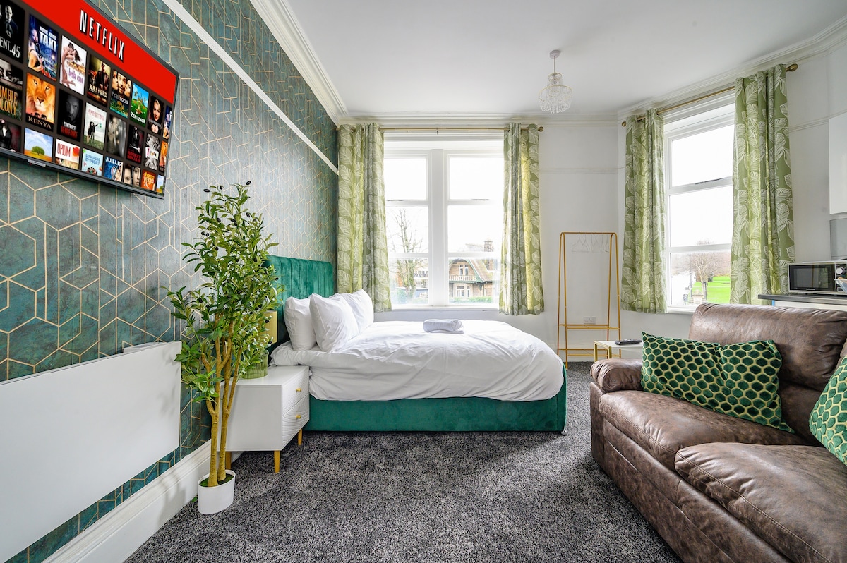 ¡Los valores ecológicos y la elegancia del centro de la ciudad se combinan en un hogar lejos de casa! Apartamento tipo estudio único y recientemente reformado con un alto nivel, ubicado en el corazón de Hyde Park, Leeds. El estudio tiene su propia entrada privada con un interior acogedor y ecléctico, una decoración de buen gusto y un entorno cómodo. ¡Seguro que disfrutarás de tu estancia! La zona es animada con sus muchos restaurantes eclécticos para explorar y el famoso parque Hyde Park está a solo unos minutos a pie.