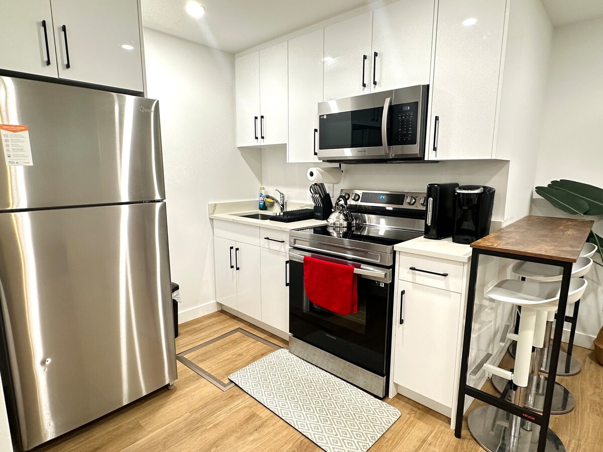 Disfruta de la comodidad y conveniencia que ofrece esta acogedora suite en el sótano en la tranquila zona de Greens. Crea recuerdos inolvidables en esta villa única ideal para familias. Está a 5 minutos en coche de Costco y a 8 minutos en coche de Walmart y Superstore. Este espacio superlimpio tiene una cómoda cama tamaño queen y aparcamiento gratuito. Cuenta con internet de alta velocidad de 325 Mbps wifi, TV inteligente de 40 pulgadas que incluye acceso a Prime Video y Netflix. La cocina pequeña tiene elementos esenciales como microondas, nevera, jarra de agua caliente, cafetera y tostadora.