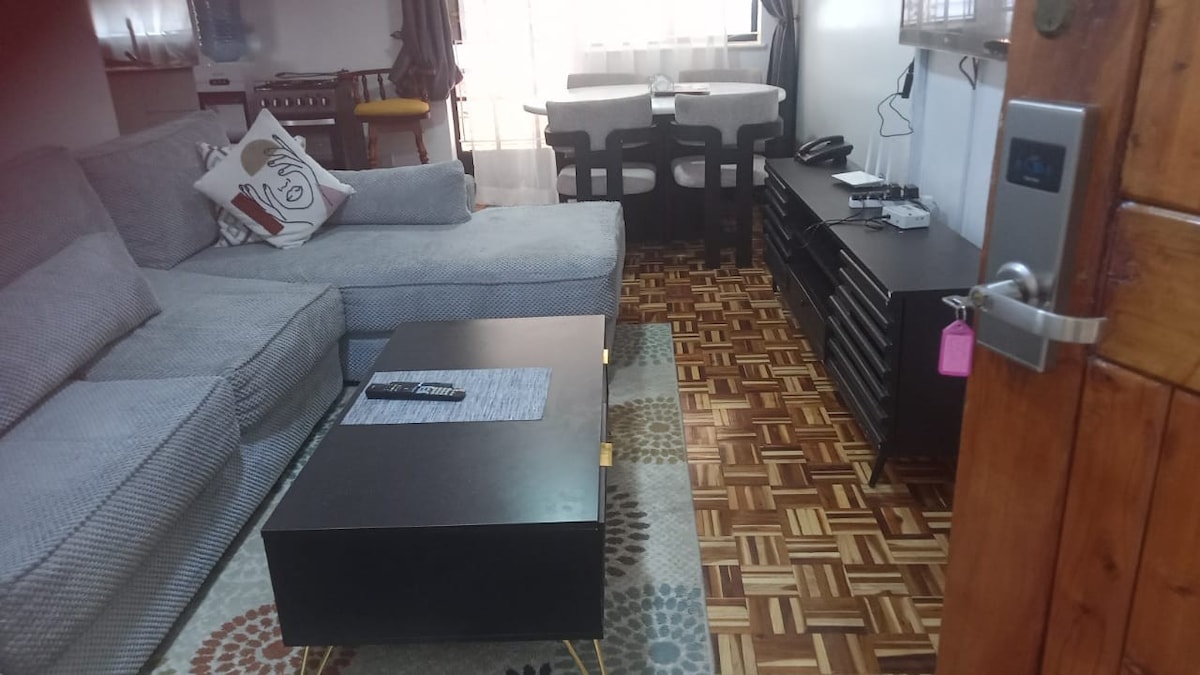 Una escapada tranquila y elegante en el corazón de Kilimani. Este departamento, diseñado con esmero, combina tonos tierra cálidos, iluminación suave y texturas naturales para crear un espacio acogedor y moderno. Relajate en el living iluminado por el sol, con su sofá en tonos óxido y su arte curado, disfrutá de las comidas en el elegante comedor o cociná en la cocina totalmente equipada. Por la noche, relajate en un dormitorio tranquilo. Perfecto para personas que viajan solas, parejas o familias que buscan comodidad, estilo y conveniencia.