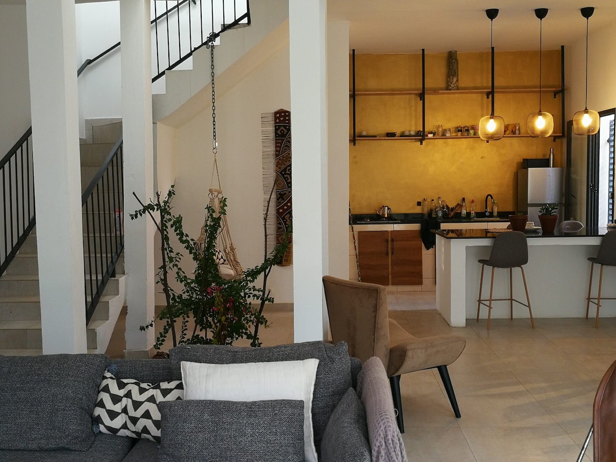 Ubicada en los acantilados de Toubab Dialaw, a 5/10 minutos de la playa, relájate en esta tranquila y relajante villa, totalmente equipada con una gran piscina, una zona exterior muy grande, una pequeña sala de estar / TV (TV inteligente) y la cocina que se abre al exterior. La villa tiene 2/3 dormitorios con aire acondicionado y baños individuales.