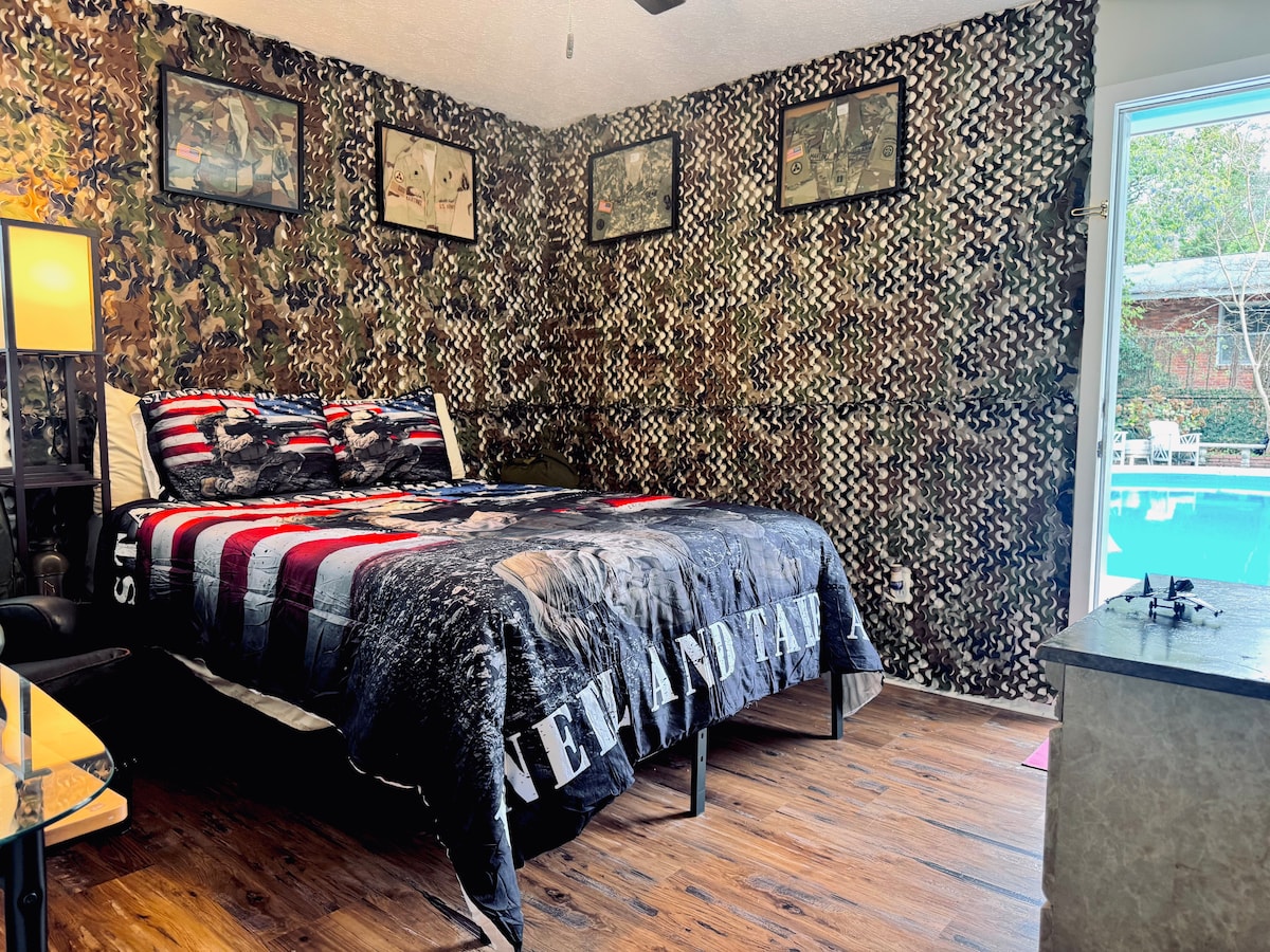 Relájate con toda la familia en esta tranquila casa histórica. Mi familia y yo hemos hecho todo lo posible para que este sea tu hogar lejos de casa. Contamos con todo lo necesario para que tu estancia sea increíble. Tanto si tu grupo viene a Columbus para unas vacaciones relajantes como si está aquí para la graduación de tus soldados (Infantería/Blindados OSUT, Aerotransportados, Ranger, Escuela de Candidatos a Oficiales, etc.), nos aseguraremos de que tengas indicaciones para todos y cada uno de los eventos para maximizar tu tiempo limitado con ellos.