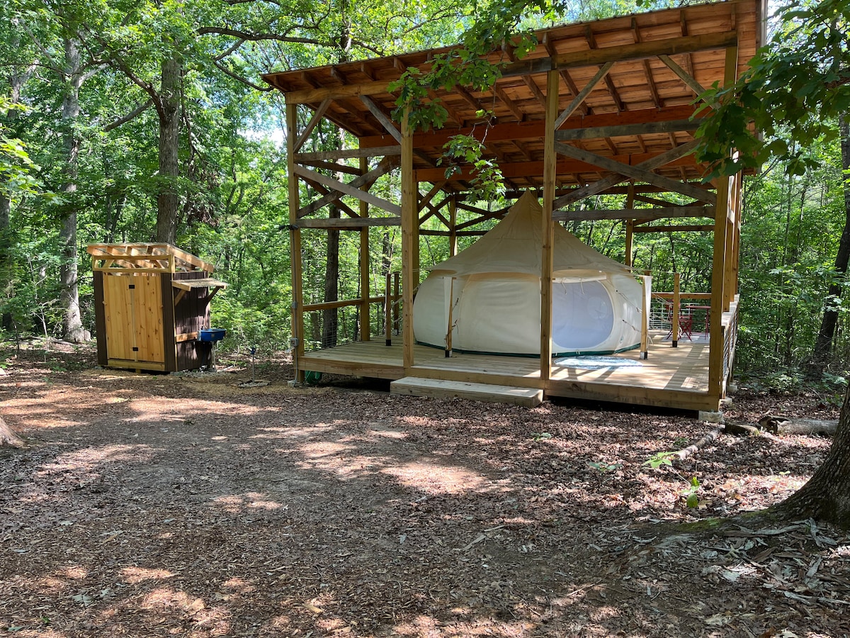 ¡Centrado entre Charlotte y Asheville estamos a su alcance! 🏕️¡Nuestro spa está disponible para reservar!🏕️ (65 $ por hora) Este es el sitio MTG3 ¡Esta tienda de campaña de glamping tiene CALEFACCIÓN ! Construido en una cubierta de 16’x16’, cama Queen, sofá plegable para un área adicional para dormir (cama completa), mesa con asientos y cargador de teléfono, iluminación interior y exterior, ventilador y área de fogata al aire libre. Parte del camping Starlight Hills tiene acceso a agua filtrada, vistas comunes (con barbacoa), senderos y baño.