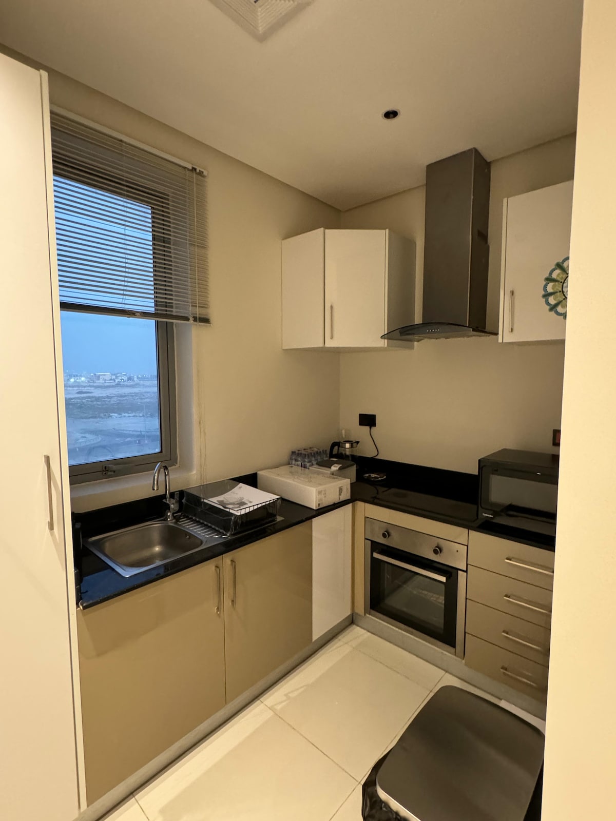 Características del departamento: • Amplio diseño de 96 metros cuadrados con decoración contemporánea • Amplio balcón privado con vistas panorámicas. • Cocina con electrodomésticos de alta gama • Acogedor dormitorio con una lujosa cama tamaño king y amplio espacio de almacenamiento. • Baño moderno con accesorios premium Edificio y servicios: • Gimnasio y piscina de última generación • Seguridad y servicio de conserjería las 24 horas, los 7 días • Espacio de estacionamiento dedicado • Restaurantes, cafeterías y tiendas minoristas en el lugar El centro de la ciudad, el centro comercial Seef, las avenidas a 5 minutos.