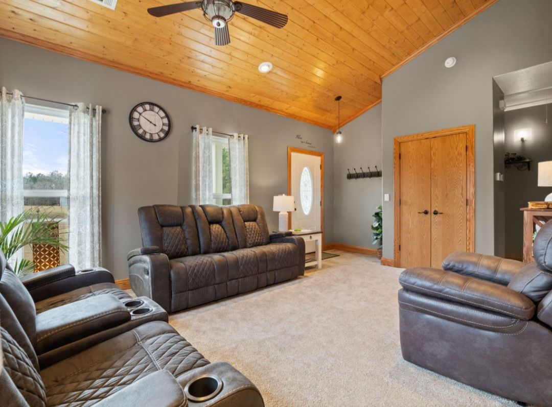 Lakeside Getaway with Log Cabin Feel Escape to a beautiful lakehouse with a log cabin feel and stunning lake views. Spacious inside and out, it’s perfect for a quiet retreat or a fun family gathering, with two extra cabins available for rent. Enjoy great fishing from the private pier, plus pickleball, tetherball, and basketball courts. Boat launches are nearby for easy lake access. Relax, play, and take in breathtaking sunsets over the water in this peaceful lakeside haven.