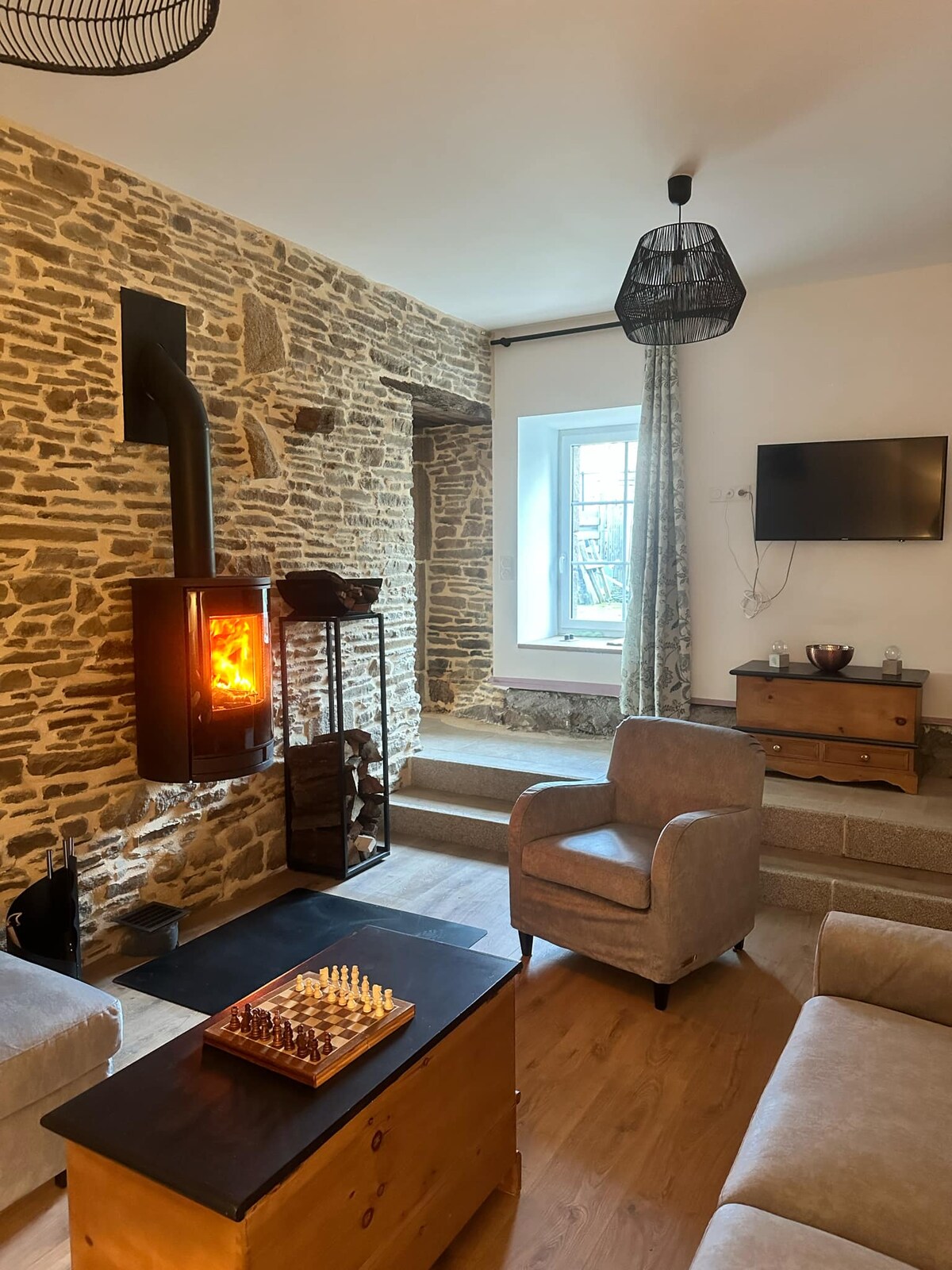 Reserva la pequeña casa rural también si necesitas 8 personas. Ofrecemos talleres de ARTE y MASAJE Un gran lugar para relajarse y/o como base perfecta para explorar algunos lugares turísticos populares como el Monte San Miguel (25 minutos), la ciudad medieval Fougieres, Saint Malo. Bicicletas disponibles. Hay madera para la chimenea interior disponible para la primera noche de tu estancia, después de eso 5 € por paquete por noche. También estamos a 5 minutos en coche del castillo de la Rouerie, lugar de celebración de bodas.