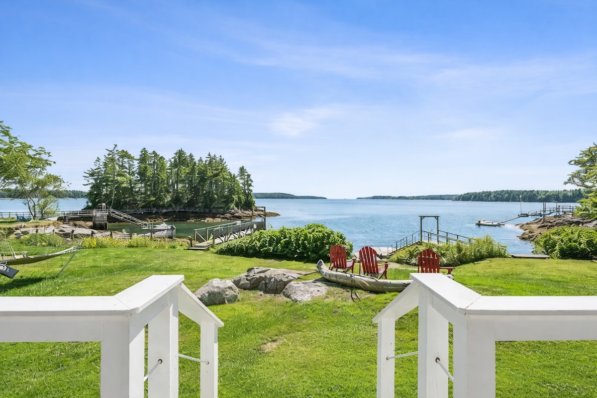 Propiedad encantadora en Maine con dos terrazas que dan al océano. Con dos terrazas cubiertas que sobresalen del borde del agua y escaleras desde el balcón inferior que ofrecen acceso directo al agua/playa. En la terraza superior, hay una hermosa zona de estar con vistas panorámicas de la cala y la vida silvestre costera. Los amaneceres son especialmente hermosos, y es común ver águilas calvas, águilas pescadoras y lobos marinos. ¡Una auténtica experiencia en Maine!
