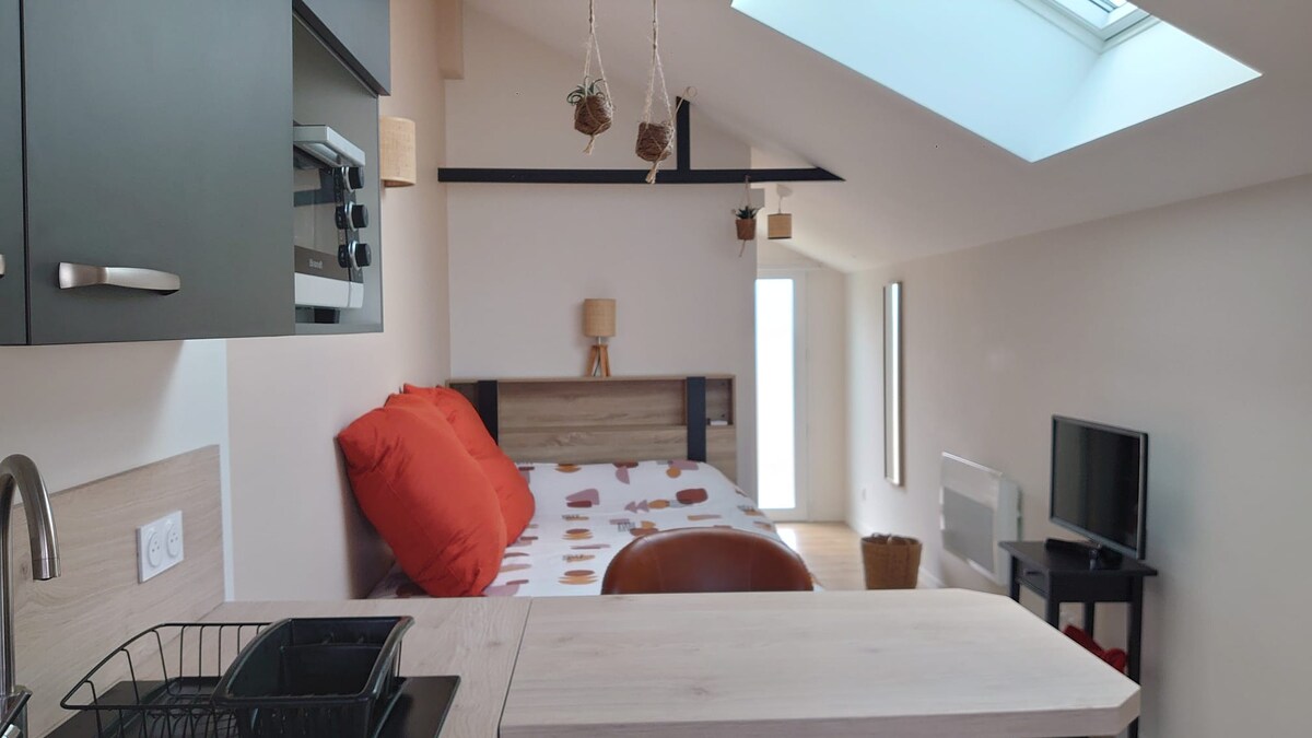 Logement neuf de 22m², attenant à notre maison. Au rez de chaussée et isolé de tout voisinage mitoyen. Studio cosy, tout équipé et très lumineux. Quartier très calme et paisible. Le studio donne sur une petite terrasse dans notre jardin. Entrée totalement indépendante avec une boite à clés.