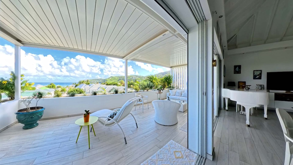 Apartamento a estrenar de 1100 pies cuadrados. A 2 minutos de Gustavia y del aeropuerto. 2 habitaciones y 2 baños. Terraza de 300 pies cuadrados, vistas al mar y piscina. Por favor, consulta también Puesta de sol y vistas al mar en St Eustache 1