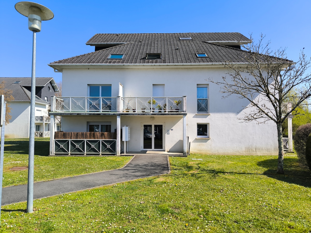 Bienvenidos a todos, Disfrute de un estudio totalmente reformado, ideal para relajarse para un we o más. Situado a 10 minutos como máximo del centro de la ciudad de Pau, una parada de autobús se encuentra frente al alojamiento, tiendas cercanas (gran superficie, panadería). Cama muy cómoda, cocina funcional, aire acondicionado, baño con encanto, ¡también disfrute de una magnífica terraza para compartir grandes comidas!