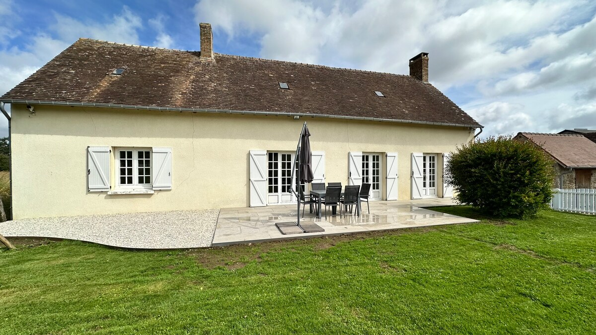 En la parte izquierda de nuestra casa rural en el campo, en un gran terreno arbolado, alojamiento compuesto por sala de estar, cocina con mesa en la planta baja. Cama doble y cama individual en el entresuelo. Arriba: un dormitorio con 2 camas individuales, un baño. Ideal para una estancia romántica. A partir de abril, jacuzzi compartido (acceso libre). Vea también mi segundo alojamiento : la caravana vintage para 2 personas. ¡ Ven y recarga !