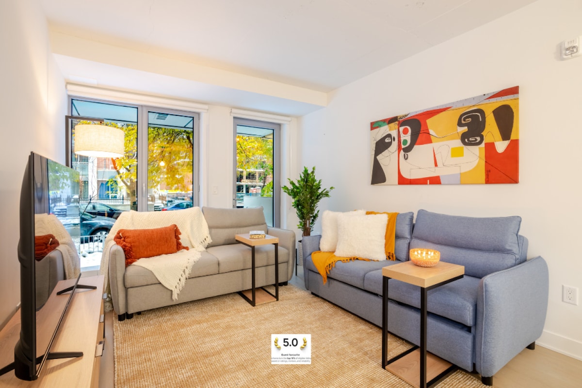 Te damos la bienvenida a este acogedor y elegante apartamento de 2 dormitorios ubicado en el barrio de Little Burgundy de Montreal, a un tiro de piedra de las mejores cafeterías, boutiques de moda y del icónico mercado Atwater. Está cuidadosamente diseñado para ofrecer todas las comodidades que necesitarás para disfrutar de una estadía inolvidable, por lo que es ideal para familias, amigos o viajeros de negocios. Relájate en la acogedora sala de estar con TV inteligente y wifi de alta velocidad, perfecta para relajarte después de un día explorando Montreal.
