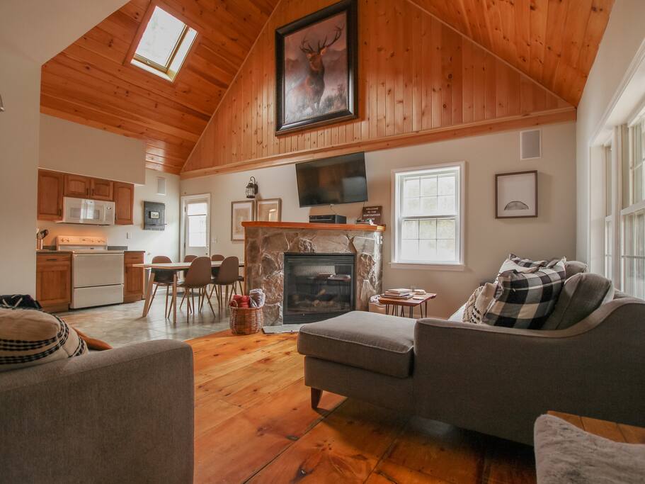 ¡Bienvenido a tu acogedor refugio enclavado en el corazón de West Burke, Vermont! Esta encantadora y pequeña cabaña de lujo ofrece una escapada serena con impresionantes vistas a la montaña Burke y su naturaleza circundante. La cabaña cuenta con una sala de estar bien equipada, perfecta para relajarse después de un día de aventuras al aire libre. Ya sea que te acurruques con un buen libro junto a la chimenea o disfrutes de una taza de café en la terraza con vistas al tranquilo estanque y al huerto de manzanas, la relajación llega de forma natural aquí.