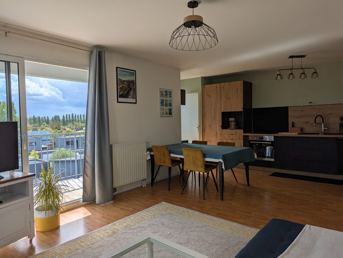 Charmant appartement avec balcon – métro à 5 min Profitez d’un agréable appartement de 40m², idéal pour un séjour confortable et pratique. Cuisine entièrement équipée, coin bureau pour travailler, TV, Wi-Fi, et un balcon pour vous détendre. Situé à deux pas d’un arrêt de bus et à seulement 400m du métro, vous êtes parfaitement connecté au reste de la ville de Rennes . Idéal pour voyageurs ou séjours professionnels. Le logement se situe à 5km du parc expos, idéal pour aller voir les événements.