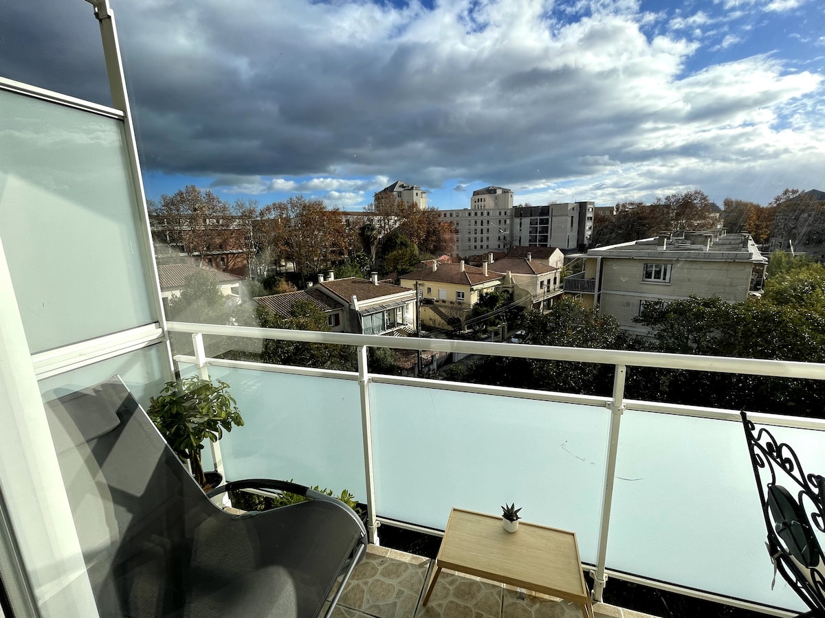 Charmant appartement de 30m2 en Rez de chaussée avec un patio privé avec de belles prestations climatisé. La cuisine est tout équipée, literie en 160, le mur en pierre apparente ajoute une touche d'authenticité, et la climatisation assure votre confort. Profitez du patio pour vous détendre ou prendre vos repas en toute intimité. L'appartement est idéalement situé près du parc Clemenceau, des commerces et restaurants, et des sites touristiques de la ville. Connexion internet haut débit incluse.