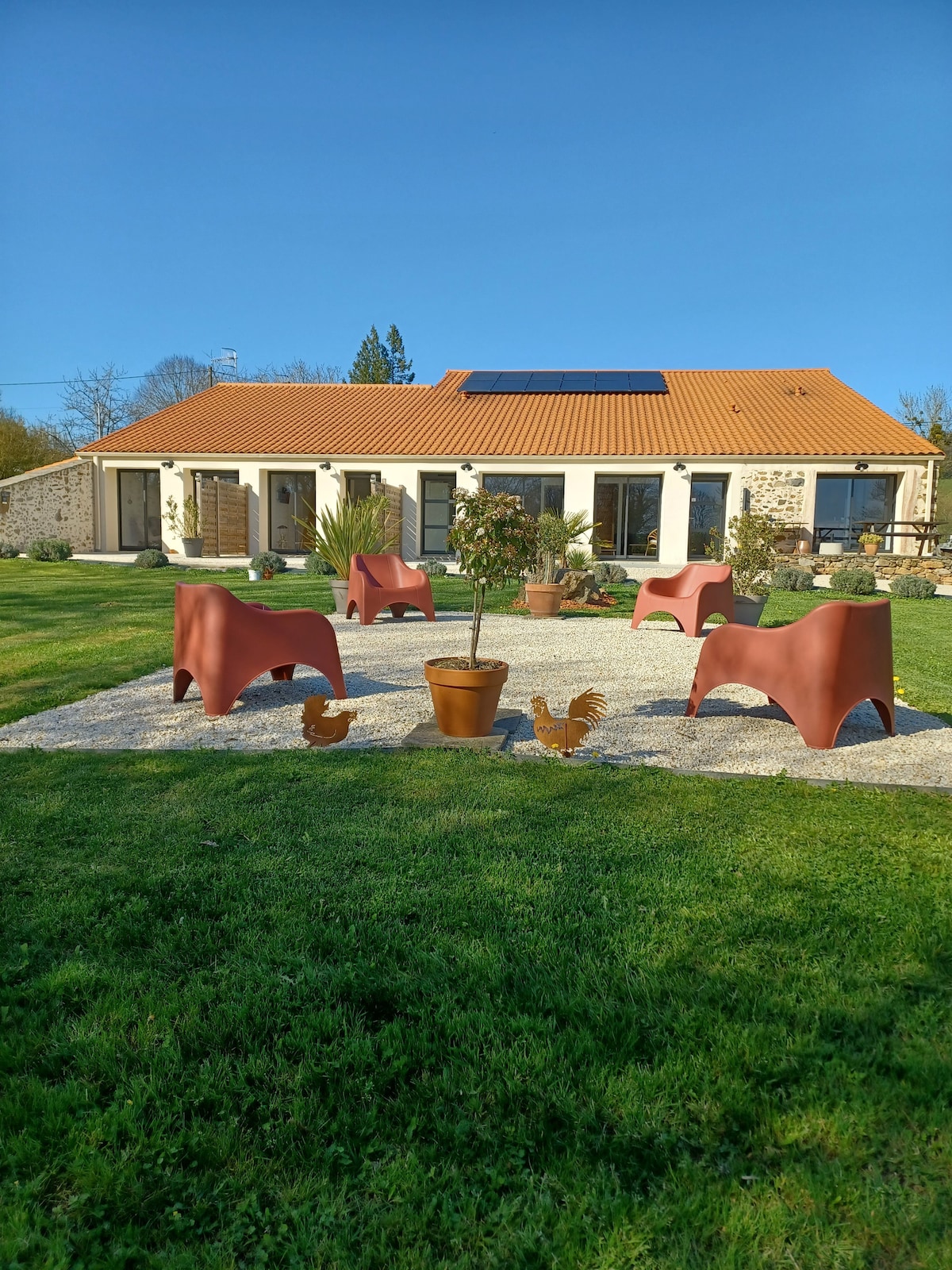Un petit paradis caché à 24mn du PuyduFou On ne va pas se mentir : quand on arrive à La Beurrerie pour la première fois, on se demande comment un endroit pareil peut encore exister. Une ancienne longère : 2 gîtes attenants, 1 lodge, avec vue imprenable, 1 piscine naturelle entourée de bambous et de végétation luxuriante. Et autour ? Des champs à perte de vue, le chant des oiseaux, le silence. C'est le genre d'endroit où l'on pose ses valises et où le temps s'arrête. Idéal pour se rassembler.