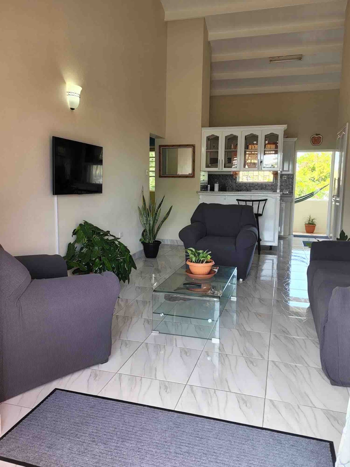 This is a centrally located self-catered apartment in the Warrens area with good amenities. Two bedrooms are furnished with king sized beds, 1 bathroom, living and dining room with kitchen and patio. Bedrooms have A/C and TVs. TV also in living area. Use our Netflix account or use ours. Ceiling fan in living area along with standing fan . Free Wifi throughout. Washer in apt. Linens, towels, dishes, glasses, cookware and utensils provided.