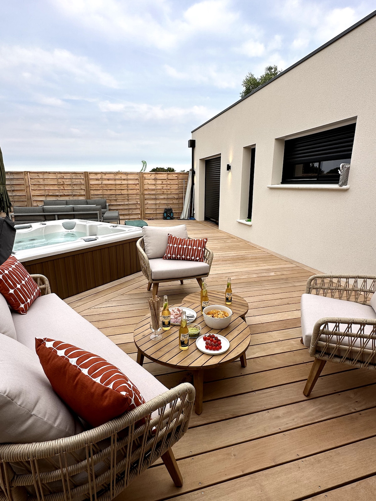 Rated 4★ by the Tourist Office, this unique house offers you a rare experience, combining absolute comfort and escape. Its three suites, each with their own carefully designed theme—Venice, Morocco, Brazil—all equipped with their own bathroom, invite you to get away from it all. Two lounges, a private spa, a high-end kitchen, a patio, and a furnished terrace provide a refined, calm, and inspiring setting. Just a 10min walk from the beach and 15min from the center, the perfect getaway awaits you!