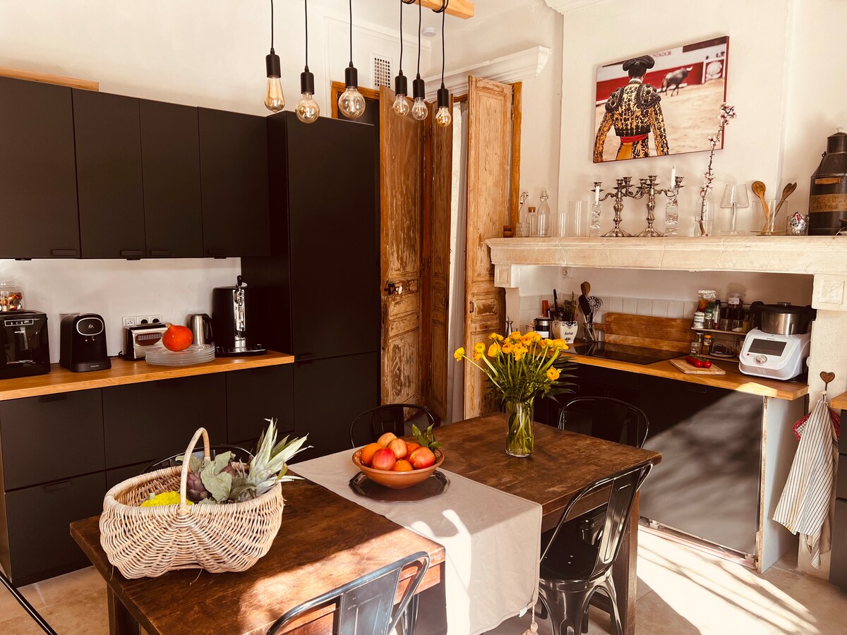 Hôtel Particulier del siglo XVIII totalmente restaurado (mansión de 300 m²) ubicado a un minuto a pie de cualquier entretenimiento de la ciudad. Equipado con nuevas unidades de aire acondicionado. Nuestra gran azotea te dará espacio para tomar el sol, tomar una copa alrededor del brasero Ofyr o una encantadora cena al aire libre debajo de nuestra pérgola. Puedes disfrutar de vistas a la ciudad o a la montaña. La exposición garantiza sol desde el amanecer hasta el atardecer sin parar. La segunda cocina en la terraza está totalmente equipada para ayudarte.