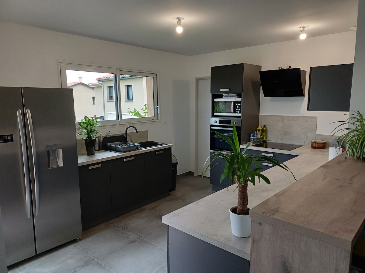 Dans une maison neuve : studio bien ensoleillé . Ce logement agréable, très calme est de plain pied. Il possède une kitchenette, vous pouvez faire vos repas. Vous posez votre auto à la porte. Terrasse privative. Ce lieu est situé sur l'axe LYON-ROANNE, à 12 mns de Lyon, capitale de la région Rhône Alpes, à la porte du Beaujolais, beau village d'OINGT. Voie d'accès A 89 à 2 kms. La région des Pierres Dorées est proche. Différents commerces, gare Vous noterez : serviettes de toilette NON FOURNIES.