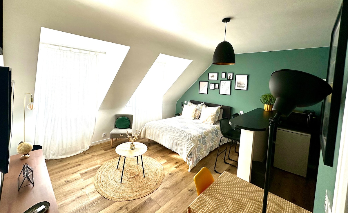 En el corazón del centro de la ciudad, podrá relajarse en este estudio de 27 m2 completamente renovado en 2022 situado en el tercer piso con ascensor. Este alojamiento es ideal para sus viajes de negocios o para venir en pareja a descubrir la zona. A menos de 300 metros del alojamiento encontrará un cine, varios restaurantes, una tienda de comestibles abierta 7/7 días hasta las 22:00, bares, tabaco…... Disfrute de una vista de los tejados y los campanarios de las iglesias.