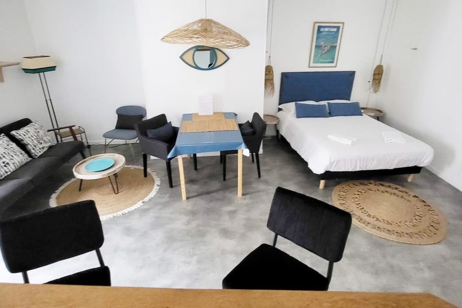 El "Cosy Beach" es un gran estudio luminoso. Se encuentra en el 1er piso de una pequeña residencia en un patio tranquilo ya solo 50 m de la playa de Bas Sablons. Apreciará el estacionamiento gratuito al pie de la residencia, la proximidad de las tiendas, el mercado a pocos pasos e Intra-Muros a 15 minutos a pie. ¡La base ideal para una escala exitosa en Saint-Malo! No apto para niños de 0 a 2 años, lo siento.