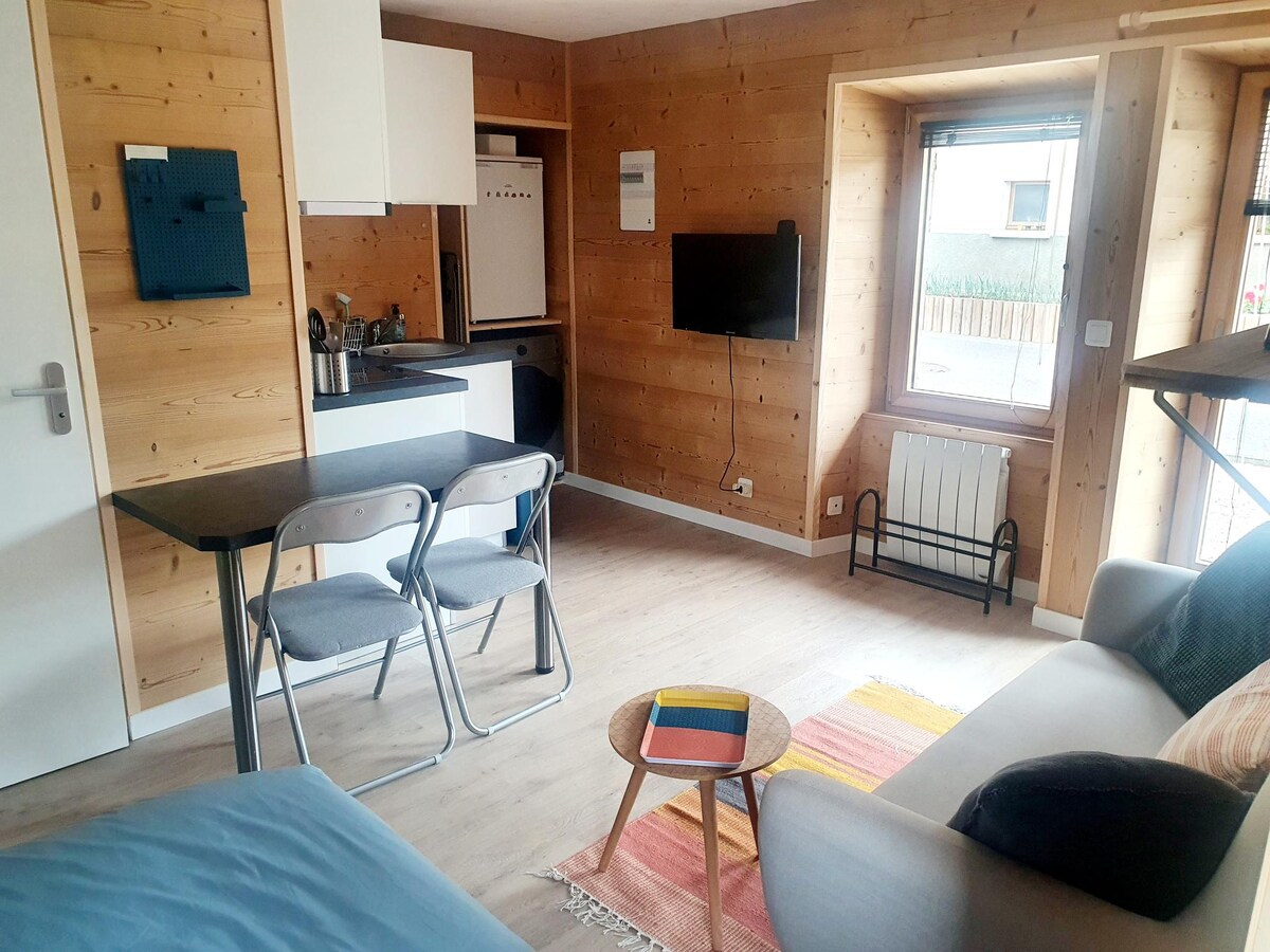 Grand T2 entièrement meublé dans une maison individuelle avec une entrée indépendante. Il dispose d'une grande pièce à vivre avec cuisine intégrée et coin salon (canapé lit) qui donne sur une grande terrasse en bois. Une chambre avec un lit en 160 donne accès à la salle de bain et au dressing. WC indépendant. Possibilité de lave linge pour les séjours de minimum 4 nuits. A noter que pour une réservation d'une seule nuit, nous ne fournissons le linge de maison que pour deux personnes.