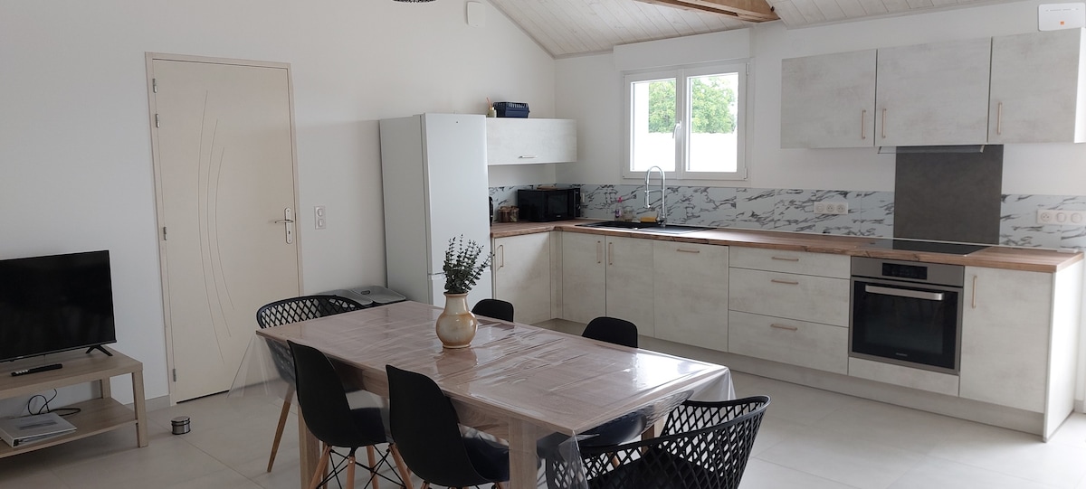 studio de 18m² style atelier avec sa terrasse ensoleillé . Parfait pour un séjour détente, un week-end en amoureux ou des vacances au bord de l'océan. Situe dans quartier calme a 10mn a pied de la mer en bordure de foret .commerces a proximités . a 20mn des sables d olonne. de belle ballades a faire a pied ou a vélo (la vélodyssée est a 100m) . a 10mn en voiture parc aquatique o'gliss . Vous apprécierez mon logement pour sa situation et son confort .nous considèrons nos hotes comme des invités