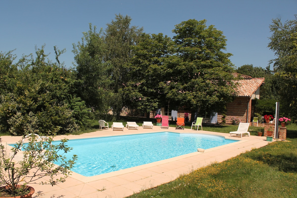 Situé à 35 mn de Toulouse et aux portes du Gers, nous vous accueillerons dans un cadre calme, ouvert sur la nature environnante. Vous pourrez profiter d'un vaste jardin arboré, d'une cuisine d'été avec barbecue, d'une terrasse équipée de chaises longues, et, en saison, de la piscine, (espaces partagés avec les propriétaires). Des sentiers de randonnée sont accessibles depuis le logement et des VTT peuvent être gracieusement mis à disposition.