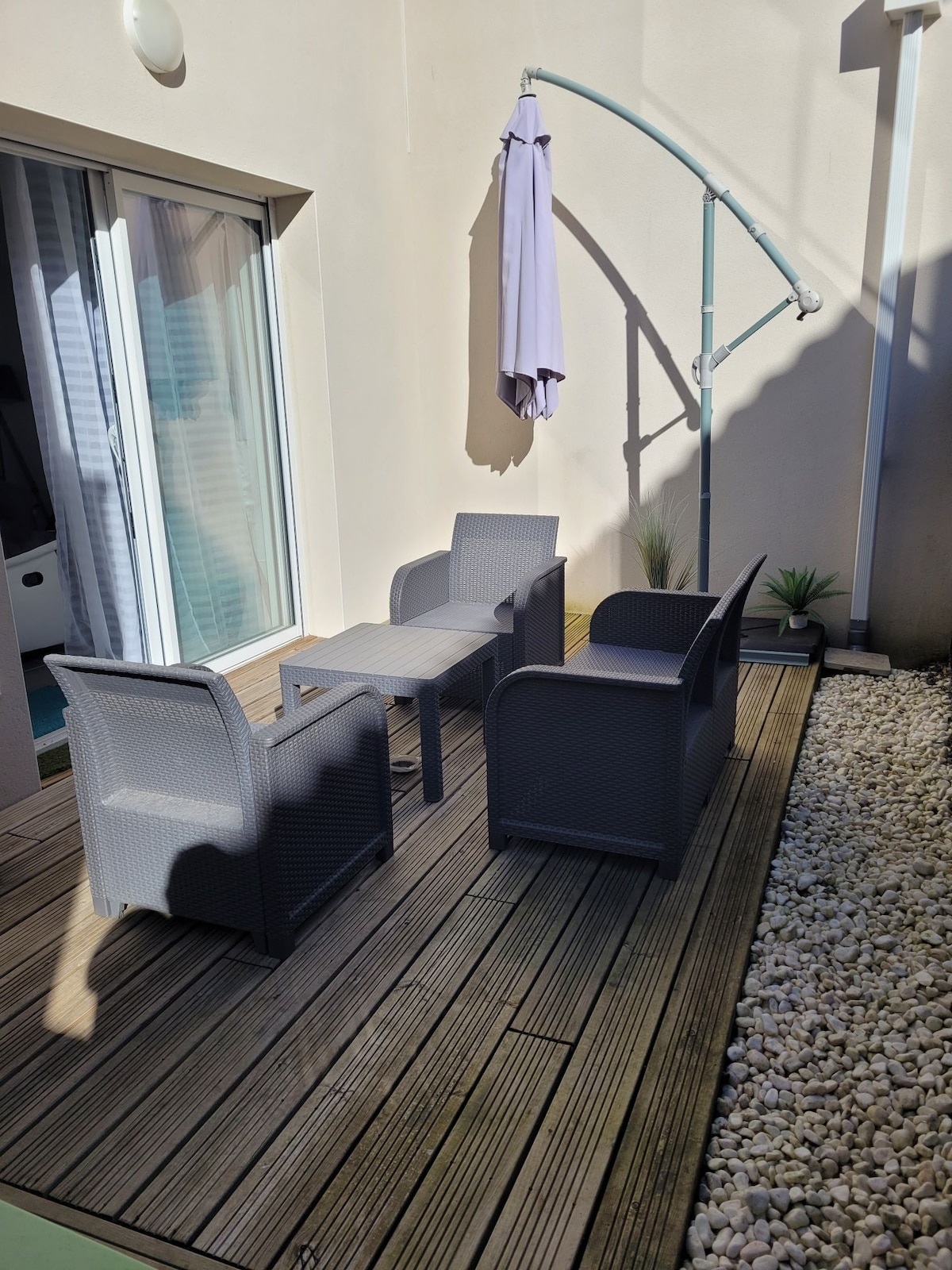 Appartement T2 - Rez-de-chaussée jardin privatif et clôturé dans résidence calme. Place de parking et prise pour charger sa voiture 1 chambre avec 2 lits et un canapé convertible . Un lit parapluie est aussi fourni . Machine à laver à disposition . Appartement climatisé À une trentaine de kms de Toulouse et 23 kms de l aéroport. A la frontière du Gers ( environ 17 kms ) Magasin Leclerc à proximité ainsi qu un carrefour . Également restauration rapide Piscine municipale à 4 min en voiture