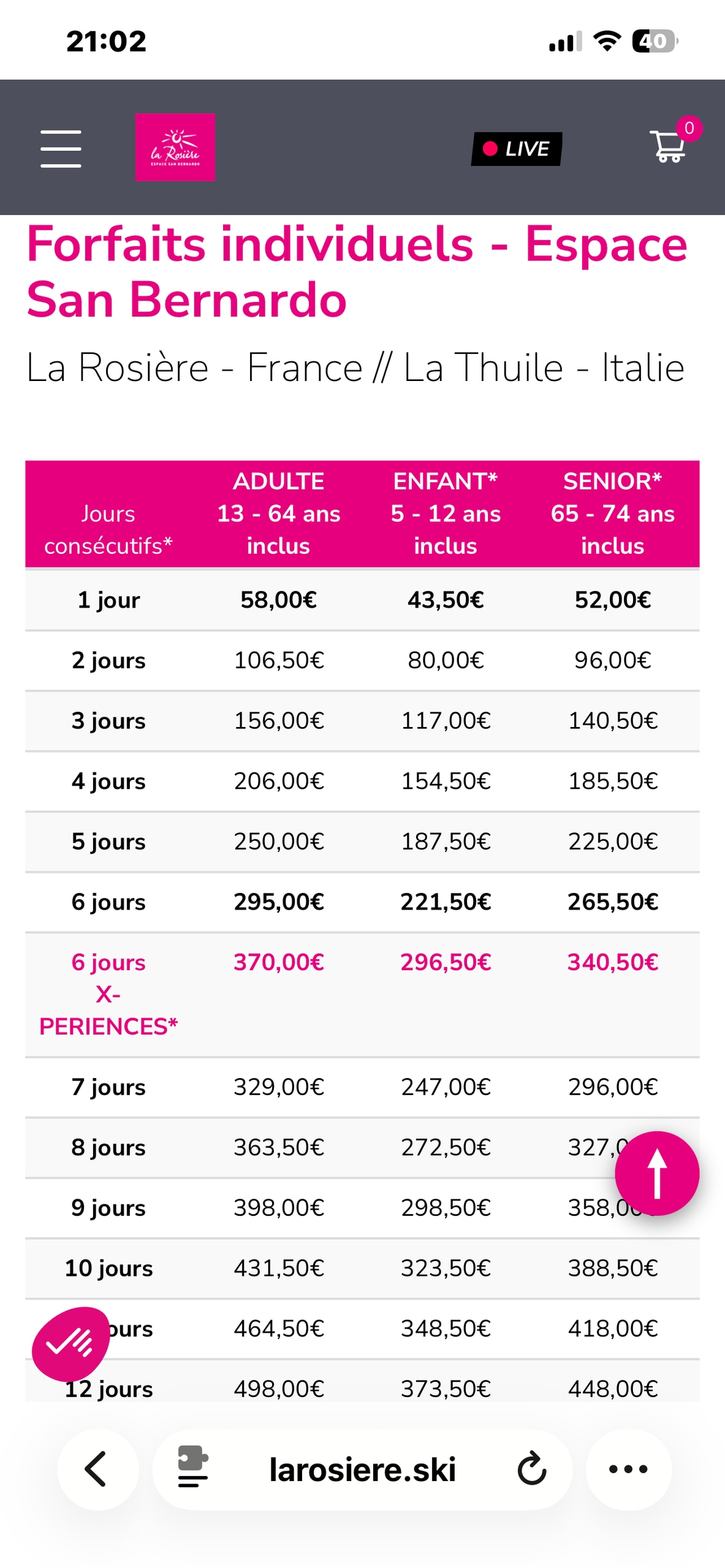 Val d'Isère, entrada y salida de esquí 4/6 personas