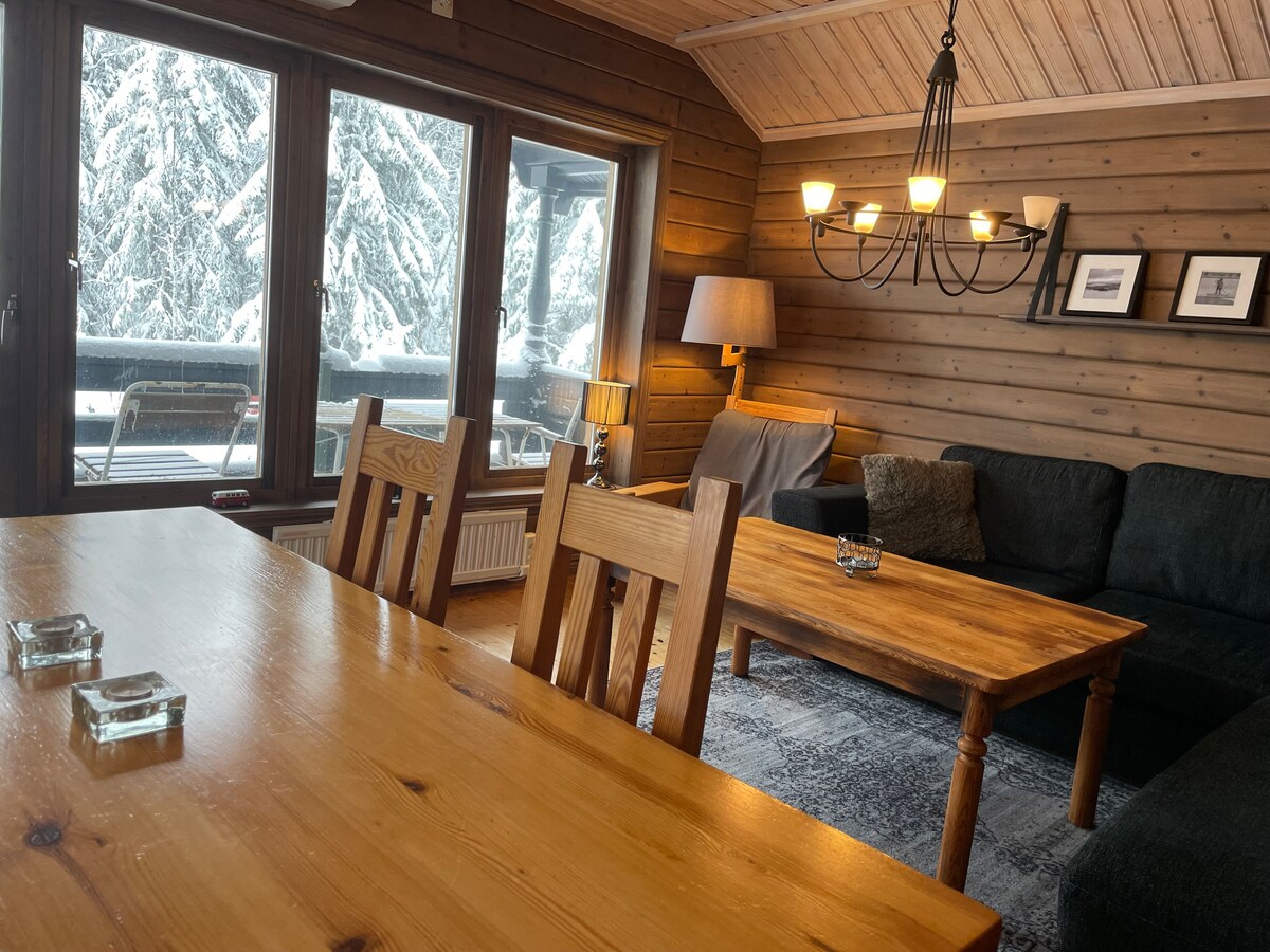 Bienvenido a nuestra encantadora cabaña con una acogedora sauna y sala de parrilla en el patio trasero. La cabaña está dividida en dos partes separadas que se alquilan por separado. Hay un autobús de esquí gratuito cerca y acceso a hermosas pistas de esquí de fondo y de motos de nieve justo al lado de la casa. Las pistas, supermercados, etc. están a solo 5 minutos en coche. Restaurantes locales a 15 minutos andando. Ten en cuenta que la limpieza solo está incluida durante Navidad, Año Nuevo, W6, W7, W8, W9. La limpieza y la ropa de cama se pueden solicitar en cualquier momento.