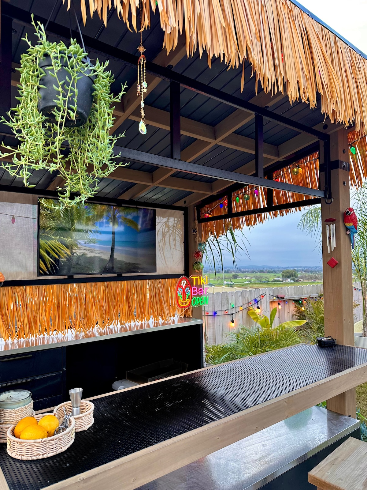 Welcome to an upscale family retreat ☀️ with sweeping mountain views, a private tiki bar, two fire pit seating areas, and a spacious backyard perfect for kids to play and families to gather. This house is perfect for a group of adults looking to getaway and enjoy a sunny spot to mix up some cocktails or play outdoor games like ax throwing! But, is designed with couples traveling with children in mind. Relax while knowing your little ones are safe nearby. (Ex. Baby locks if needed-baby gates-etc.
