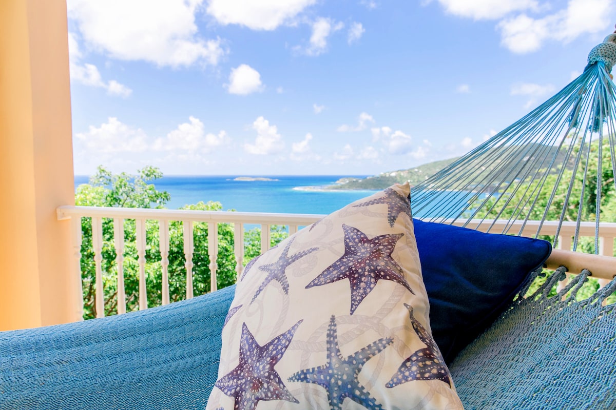 5 ★★★★★ LUJO A UN PRECIO ASEQUIBLE En Coral Bay, el lado tranquilo de St. John. Estudio de lujo con entrada privada, aire acondicionado, cama tamaño king y cocina americana. GENERADOR DE RESPALDO AUTOMÁTICO. A 5 minutos de restaurantes y tiendas de comestibles. Vista de 220 grados de la bahía desde su terraza cubierta a 100 pies sobre la bahía. Carretera y entrada pavimentadas. 4x4, coche.Jeep Wrangler y Liberty en alquiler. Espacio de playa reservado - East End (15-18 m. Dr.) Menú de servicio de habitaciones disponible. Amigable con todas las razas, religiones y LGBTQ. NO FUMAR/NO VAPEAR