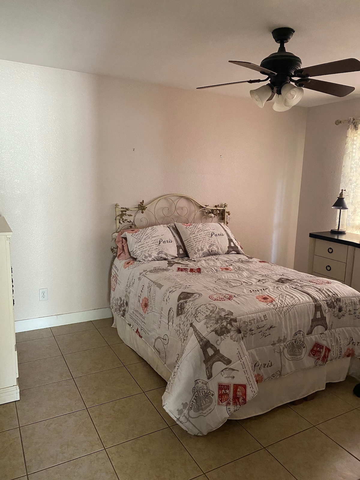 Dormitorio limpio y grande, para no fumadores y apto para sillas de ruedas, con un baño 3/4 totalmente privado. Una cafetera, microondas, nevera con refrescos de cortesía, agua embotellada, entrada privada, escritorio, platos, tazones, cubiertos, aire acondicionado, secador de pelo, toallas, plancha, armario y cama tamaño king te esperan. Libros, TV inteligente de 40 pulgadas, 5g I-Net y juegos incluidos. Ponte en contacto con tu anfitrión para conocer las opciones de desayuno cuando recibas los códigos de llegada. Apto para personas con movilidad reducida. ¡Te encantará este lugar! Ciudad de Mesa, AZ STR Licencia LIC25-13143