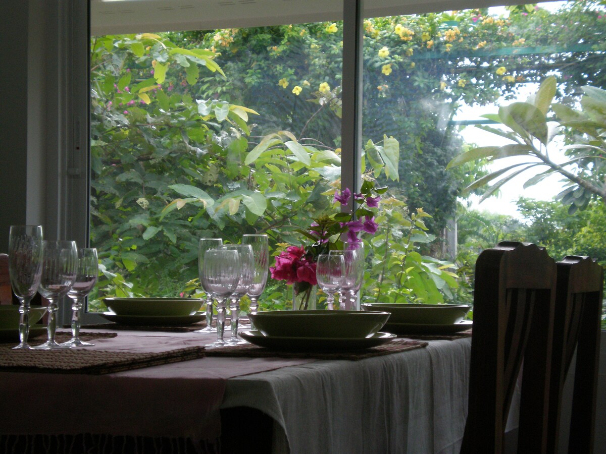 Nuestra casa adosada está situada en un tranquilo pueblo tropical a pocos minutos a pie de la playa. Totalmente renovada en abril de 2023, cuenta con un diseño moderno, una distribución bien pensada, 2 nuevos aires acondicionados y murales pintados a mano que harán que tus fotos destaquen. En 60 metros cuadrados hay sala de estar con TV inteligente, escritorio designado, cocina totalmente equipada con microondas, horno y cafetera, zona de comedor, dormitorio con colchón tamaño king nuevo, baño con ducha de efecto lluvia y balcón. Frente a la casa hay una piscina de olas.