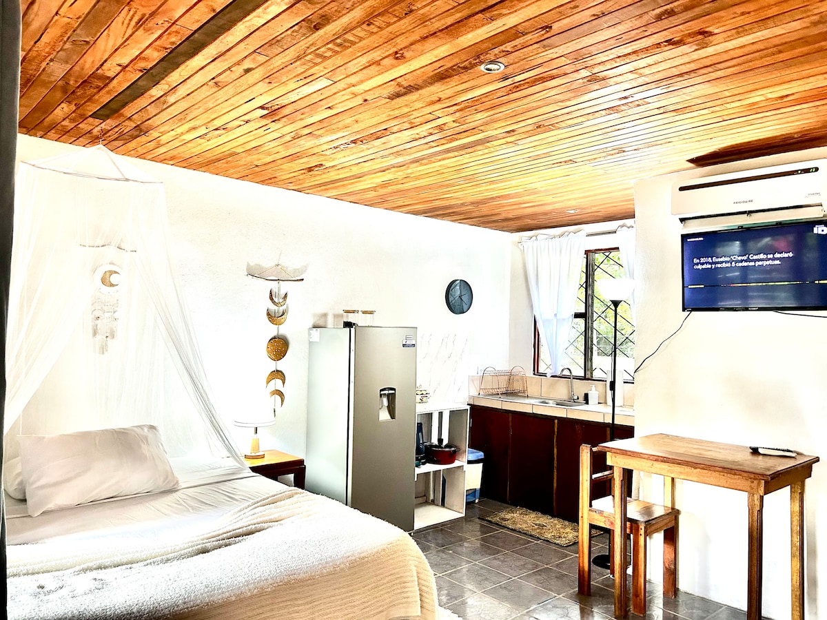 Grand reopening mid-November after an extensive remodel. Boheme consists of 6 boutique apartments (2 buildings)and is located in the heart of Playa Guiones- the beautiful, surf and yoga haven in Costa Rica. This fully air-conditioned unit consists of a sizable living room with a large sofa, a very comfortable bedroom with a king bed, kitchenette, and a large shower. It is approximately 600 sq/ft in size.